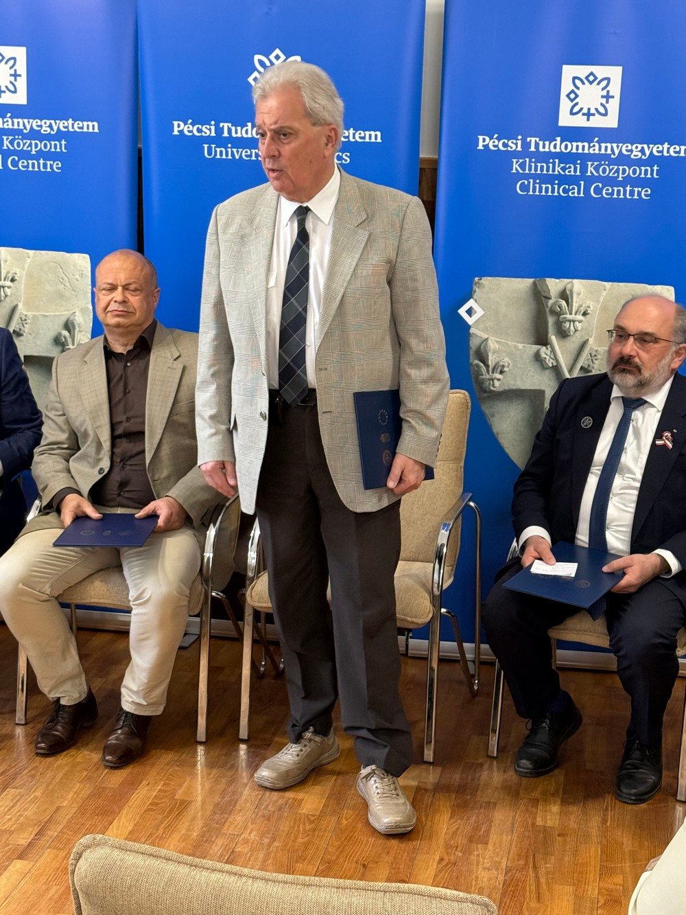 Az OJV értékét és jelentőségét jól mutatja, hogy az intézmény felső vezetői is megtisztelik jelenlétükkel minden évben az ünnepélyes adomány átadót. Velünk volt Prof.Dr. Decsi Tamás a klinikai központ igazgatója, Dr. Sebestyén Andor a klinikai központ elnöke valamint Szili Katalin a Magyar Országgyűlés korábbi elnöke, a Pécsi Tudományegyetem kuratóriumi tagja.
